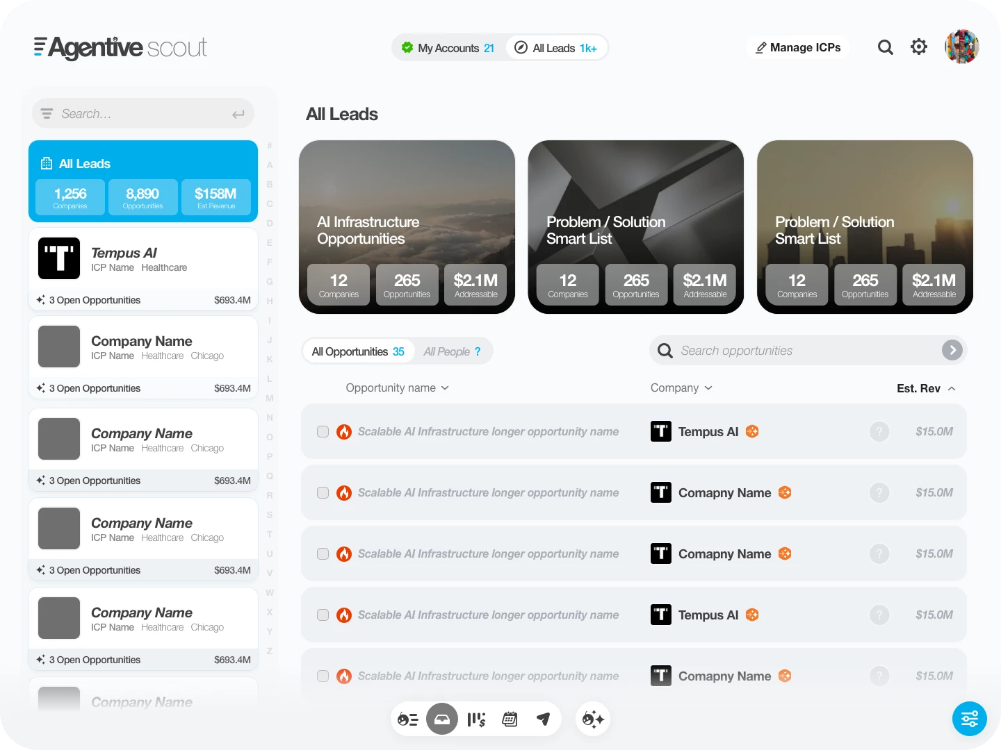 Agentive is a next generation sales enablement platform built from the ground up with an AI-First approach. It is a literal game changer in the sales and opportunity-identification space, spoon-feeding salespeople with validated, actionable sales leads that convert.